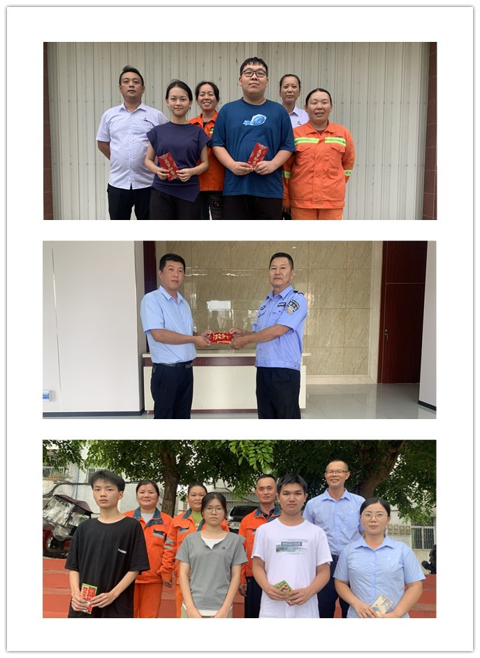 8月27日,公司行政人事部奔赴項目現(xiàn)場為6名考上本科院校的員工子女發(fā)放2025年高考獎勵金,送上公司的祝福與鼓勵。這一舉措以教育關懷為紐帶,讓員工感受到公司對員工 “小家” 的重視,也為學子們的求學路添一份溫暖。6名學子分別來自海南華宇暢環(huán)衛(wèi)公司、物業(yè)公司的員工家庭。